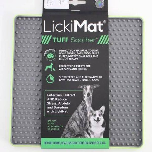For fun pet interaction, three designs are available. Lickimat Buddy, with its cross maze design, is perfect for thick sticky treats like doggy peanut butter, wet food or soggy biscuits.